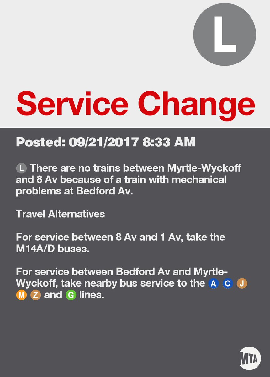L Train Service To Manhattan Suspended During Thursday Morning Commute Mta Says Williamsburg Ny Patch